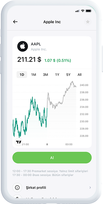Şirkət haqqında məlumatları incələ və qərarını verdikdən sonra “Alış” düyməsinə toxun.