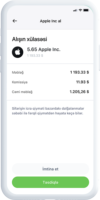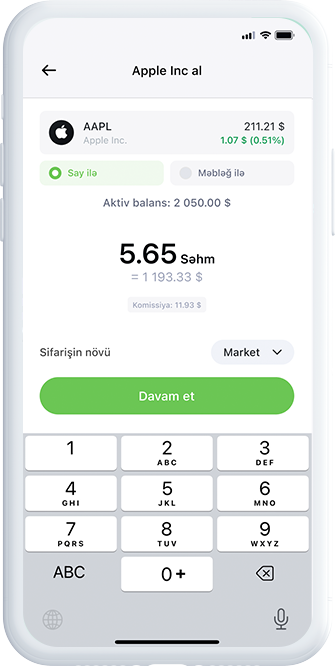 Məbləğ üzrə alış – müəyyən bir məbləğ daxil et və bu məbləğə uyğun neçə səhm alınacaqsa sistem avtomatik hesablayacaq (məsələn: 100 dollar dəyərində)